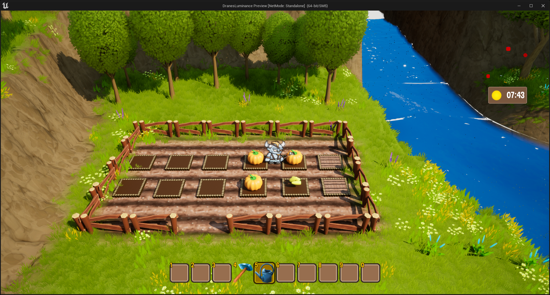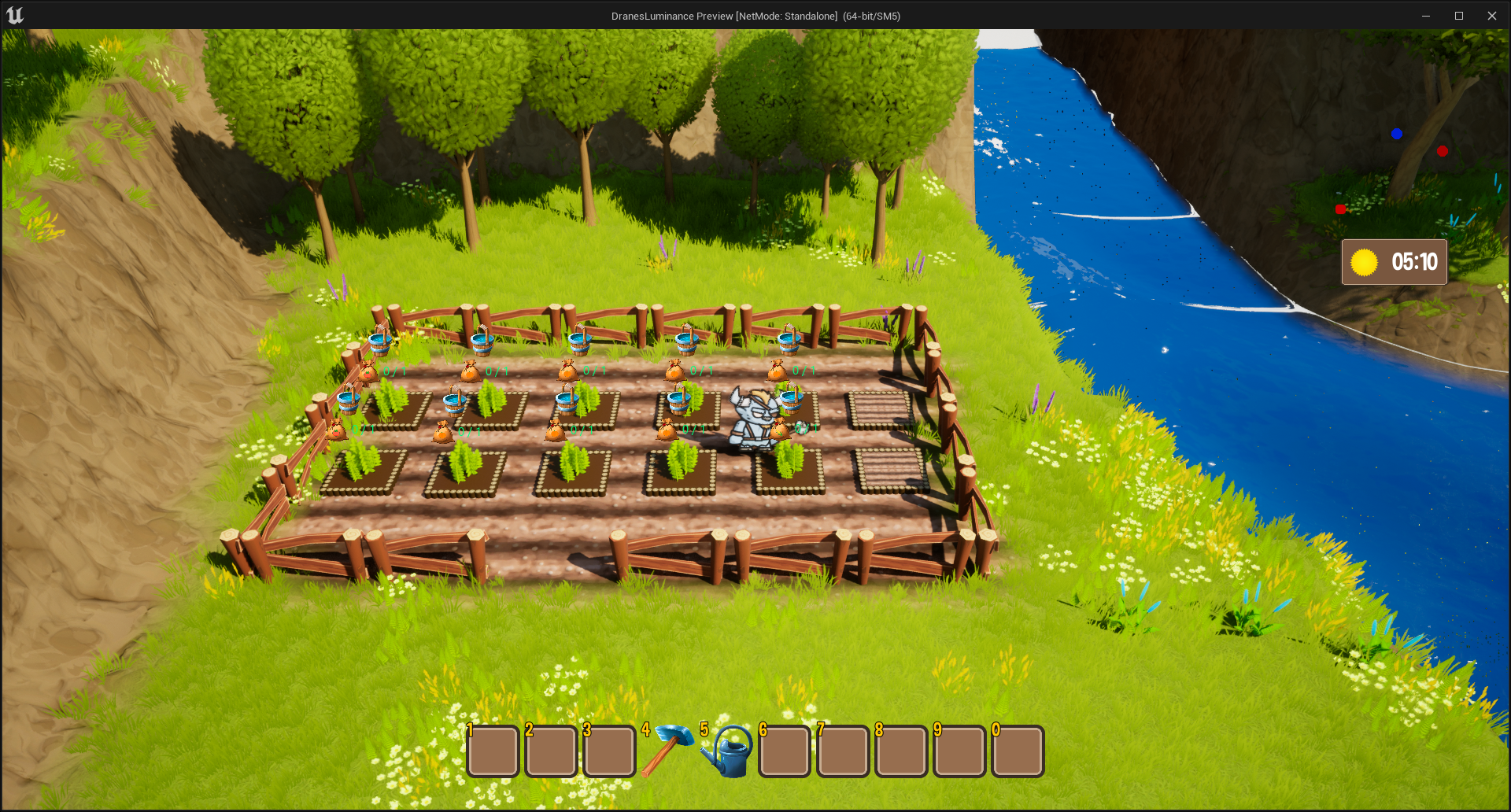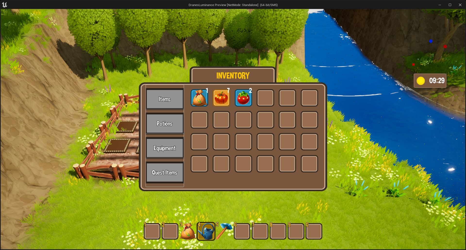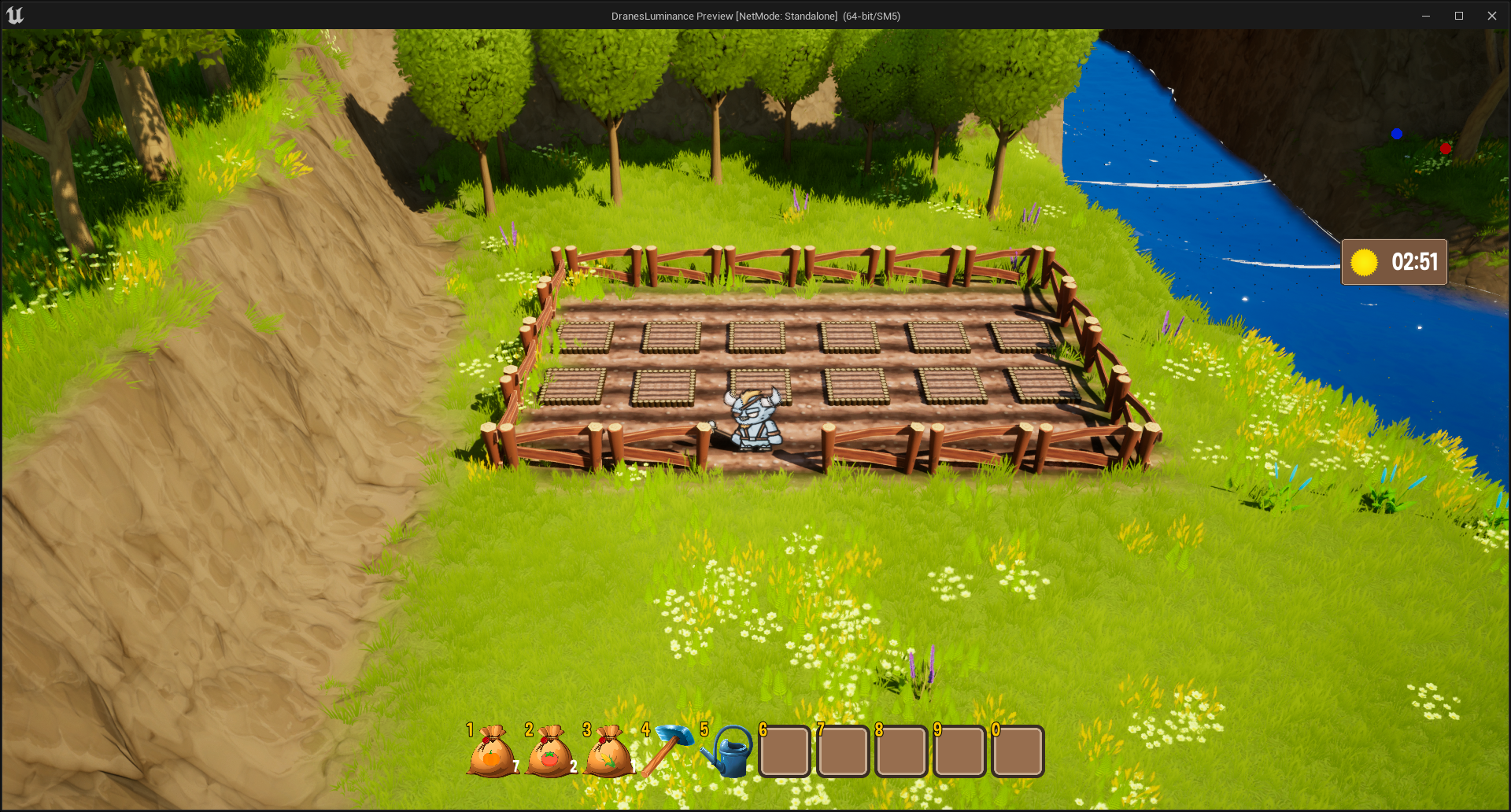 Farming is an important part of the game as the player will be able to obtain different types of seeds and plant them. When finding a plot, he will be able to decide which seed to plant by selecting it from the hotbar placed at the bottom of the UI. Upon deciding, the seed will start to grow. Farming is central to crafting; through farming you will be able to yield potions, items, upgrades to weapons, etc. Farming offers income to the player too for other matters and items they might need inside quests or tasks related to a concrete trial.