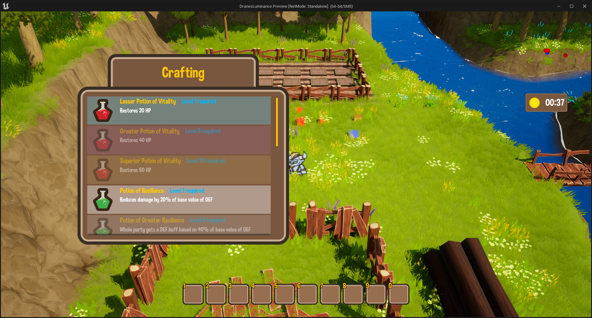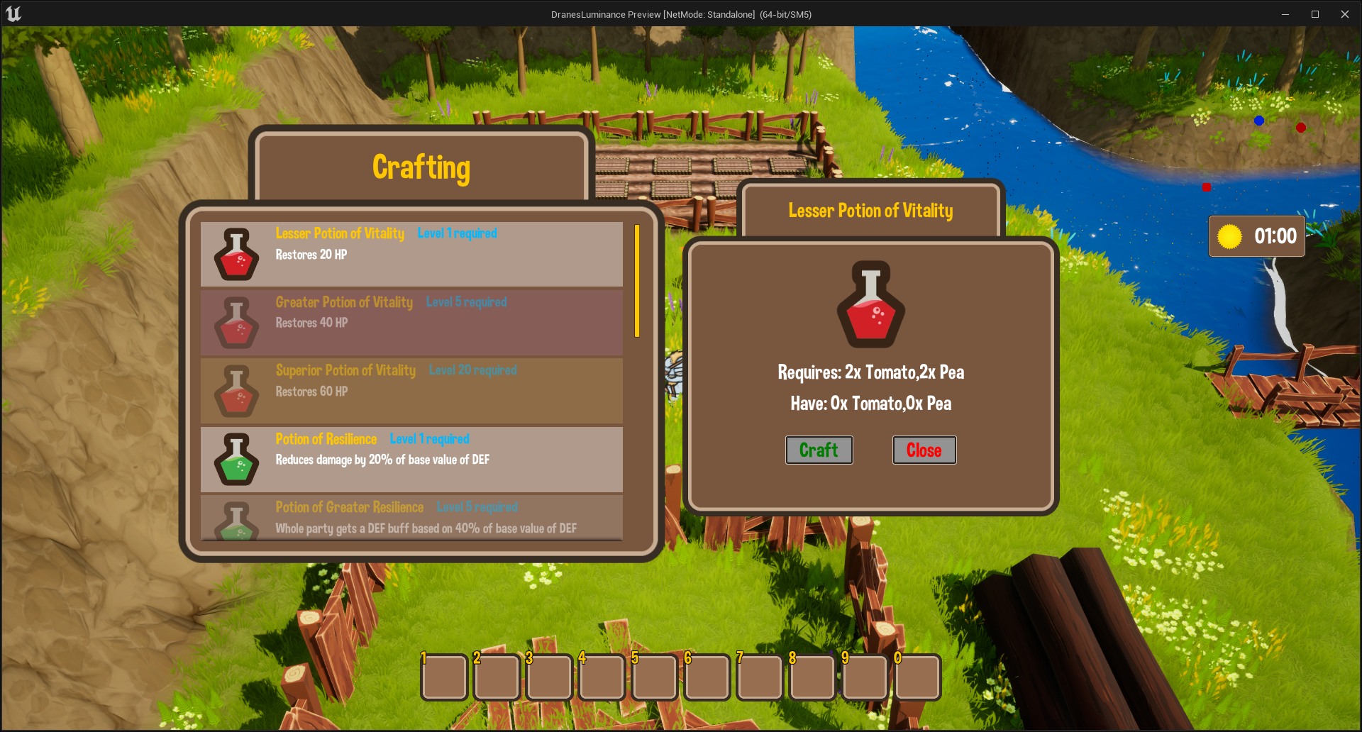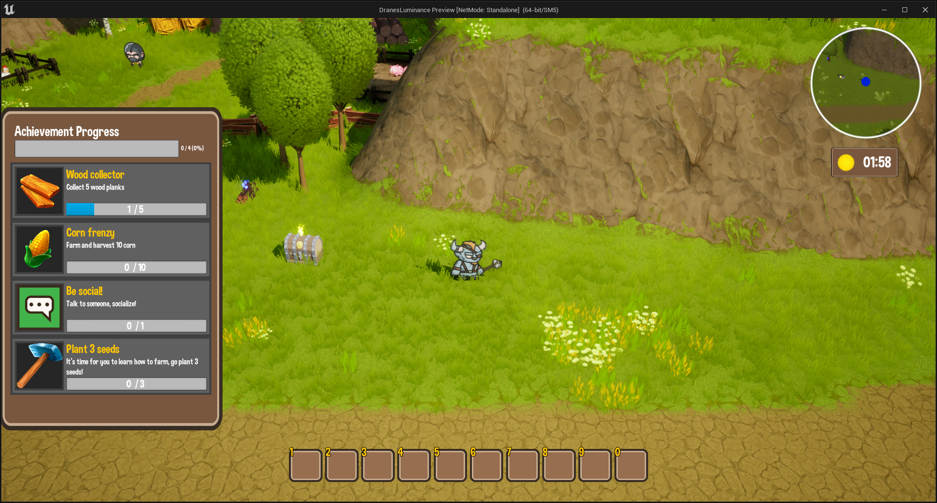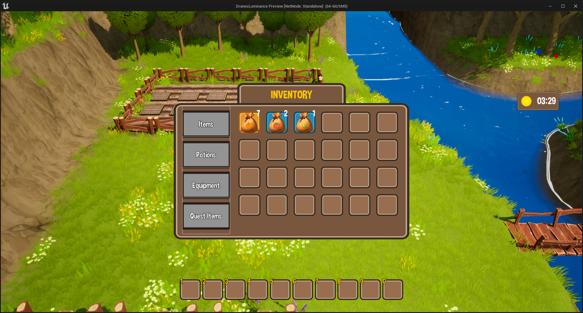 Farming is an important part of the game as the player will be able to obtain different types of seeds and plant them. When finding a plot, he will be able to decide which seed to plant by selecting it from the hotbar placed at the bottom of the UI. Upon deciding, the seed will start to grow. Farming is central to crafting; through farming you will be able to yield potions, items, upgrades to weapons, etc. Farming offers income to the player too for other matters and items they might need inside quests or tasks related to a concrete trial.