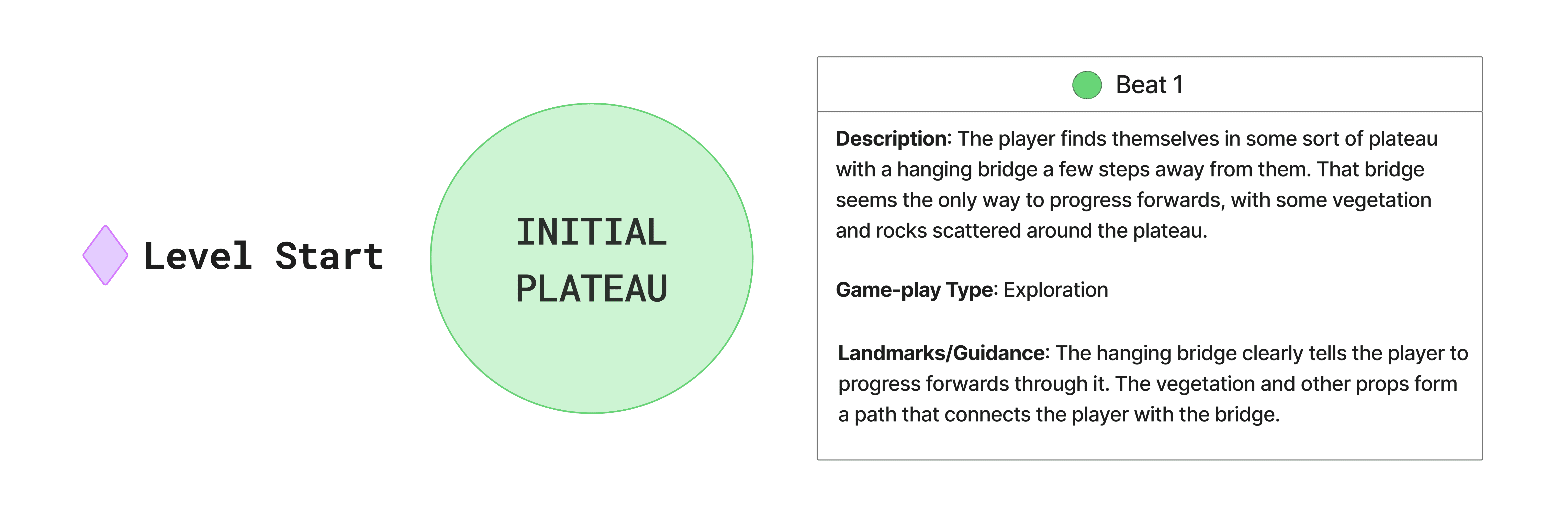 After the creation of the Level Flow Diagram and 2D map, in this section I present the Level's Beat Chart. This chart, in combination with the previous two, lets me add an extra layer of information to the overall layout and design in terms of checking how the pacing and level feels. With this done, in the next section I will be presenting the Intensity Chart.